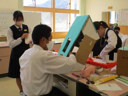 2年生は、保健体育で「自然災害が発生した場合の行動」という内容の授業でした。