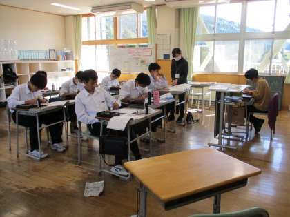 1年A組は、習字でひらがなを書いていました。 碧空級は、自立活動でした。