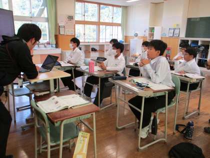 1年A組は、英語で昨日の授業の復習をしていました。 碧空級は、英語でした。