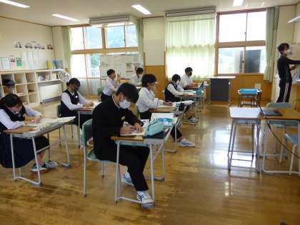 2年生は、学習発表会の発表練習をしていました。 3年生は、保健体育でした。