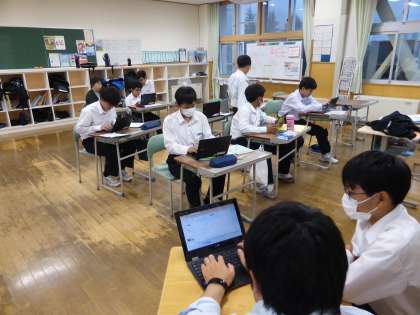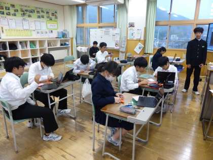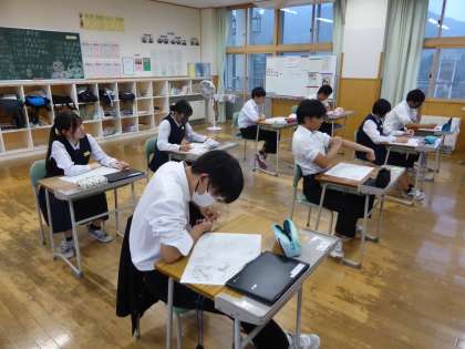 6時間目の授業の様子 公開日 2023/10/20 更新日 2023/10/20 日々の活動から 全学年楡の木タイムでした。 1年生は、学習発表会の準備をしていました。 2年生は、「箸置き」を折り紙で作っていました。 3年生は、私立高校の過去問題に挑戦していました。