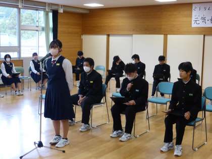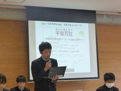 生徒会長が活動計画案を話したことに対して、質問が出ました。 それを、副会長達が答弁していました。