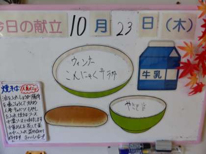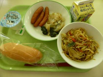 コッペパン(減) 牛乳 あらびきウインナー こんにゃくサラダ 焼きそば ヨーグルト