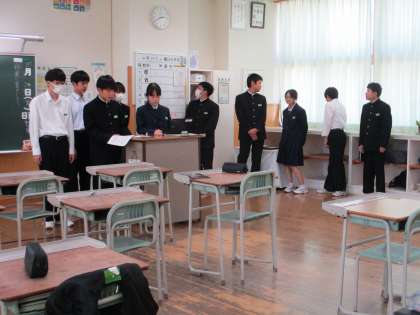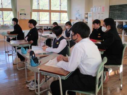 3年生は、楡の木タイムで進路指導主事から今後の進路の考え方について説明を受けていました。