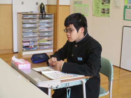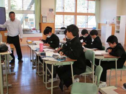 1年A組は、数学で反比例の表・式・グラフについて学んでいました。 碧空級は、英語でした。