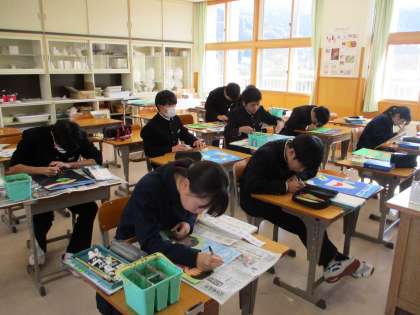 2年生は、美術で色塗りをしていました。 3年生は、国語でした。