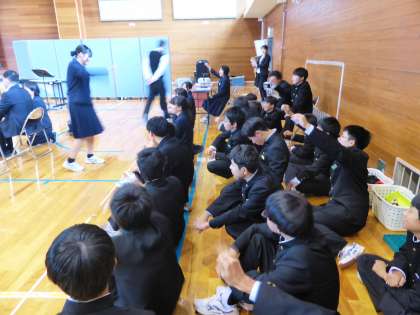 3年生の発表の様子です。 合唱の前に指揮者が檄を入れました。