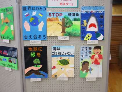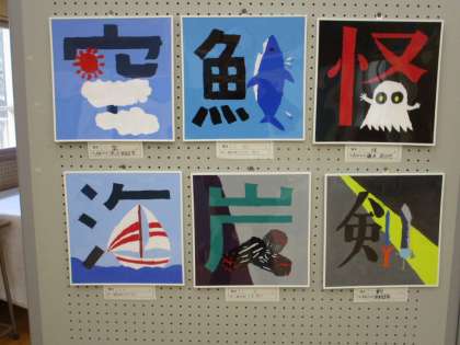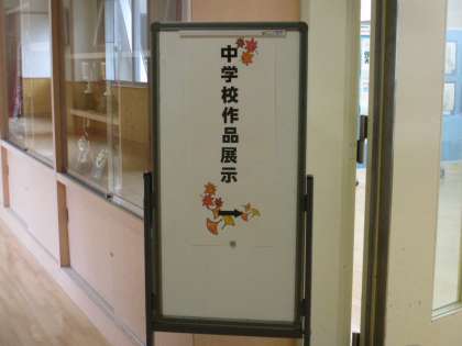 作品展示の様子です。 1年生と2年生の美術作品です。