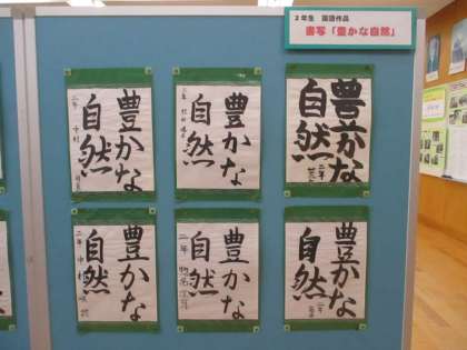 3年生の美術作品です。 1年生の美術作品です。 2年生の書道作品です。