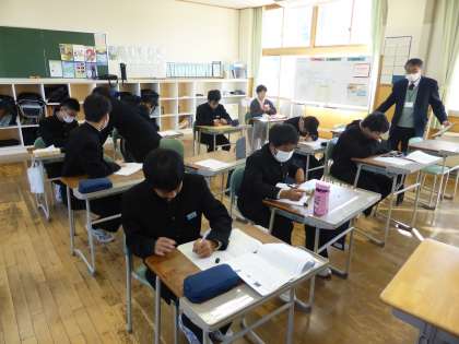 1時間目の授業の様子 公開日 2023/10/31 更新日 2023/10/31 日々の活動から 10月31日(火) 1年生は、楡の木タイムで学習発表会の振り返りをしていました。 2年生は、理科で「排出のしくみについて考えよう」という内容の授業でした。 3年生は、社会の確認テストに取り組んでいました。