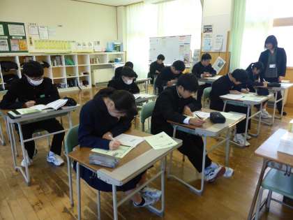 2時間目の授業の様子 2 公開日 2023/10/31 更新日 2023/10/31 日々の活動から 2年生は、楡の木タイムで今日から進路学習が始まりました。 3年生は、国語の確認テストに取り組んでいました。