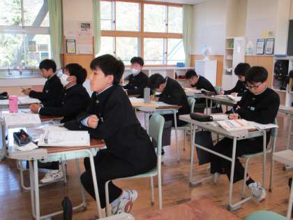 1年A組は、理科で溶解度について学んでいました。 碧空級は、理科でこれまでの復習をしていました。