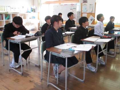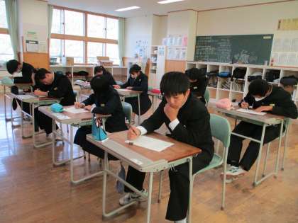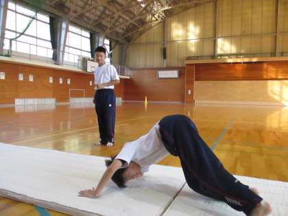 6時間目の授業の様子 公開日 2023/11/02 更新日 2023/11/02 日々の活動から 1年生は、保健体育で伸膝前転の練習をしていました。 2年生は、数学で「証明のすすめ方」という内容の授業でした。 3年生は、英語で小テストをしていました。