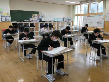 1年A組は、社会の中教研学力調査に取り組んでいました。