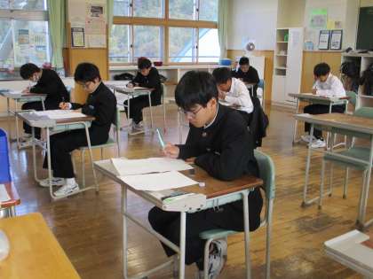 1年A組は、数学の中教研学力調査に取り組んでいました。