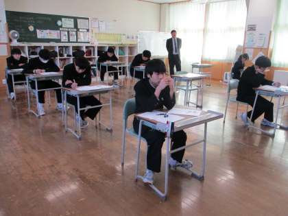 3年生は、数学の中教研学力調査に取り組んでいました。