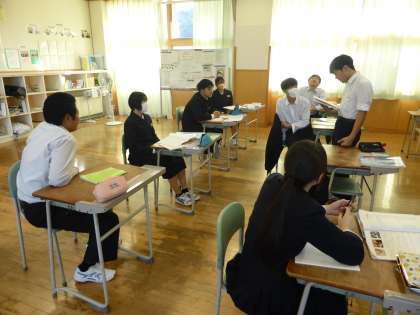 1年生は、理科の実験をしていました。 2年生は、美術でした。 3年生は、英語でした。