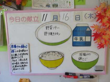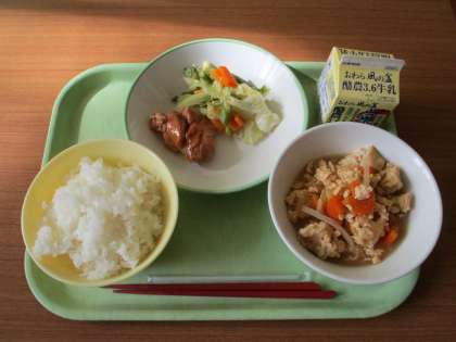 ごはん 牛乳 照焼きチキン 野菜ソテー 厚揚げの錦とじ
