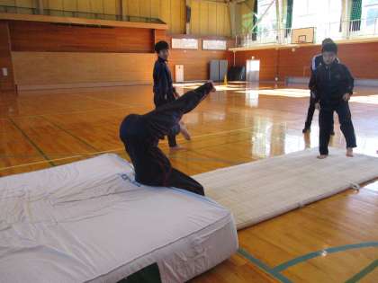 1年生は、保健体育でマット運動でした。
