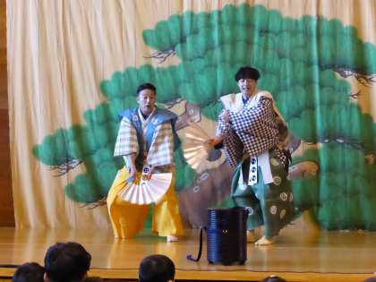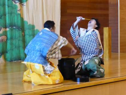 家来達が、附子の中身を食べている様子です。 生徒は、真剣に見ていました。