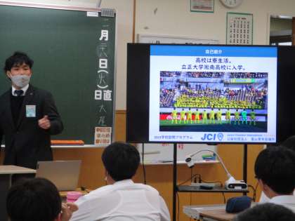 5時間目の授業の様子 1 公開日 2023/11/28 更新日 2023/11/28 日々の活動から 1年生は、キャリア教育の一環として、富山青年会議所から講師に来ていただいて、お話を聞きました。 サッカーを通じて学んだことや挫折を乗り越えたお話等 普段聞くことができない貴重なお話でした。