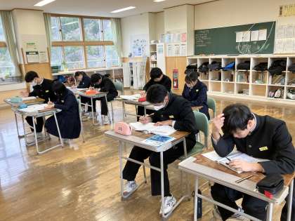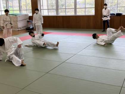 1時間目の授業の様子 公開日 2023/12/05 更新日 2023/12/05 日々の活動から 12月5日(火) 1年生は、美術でした。写真はありません。 2年生は、保健体育で柔道の受け身の練習をしていました。 3年生は、数学でした。