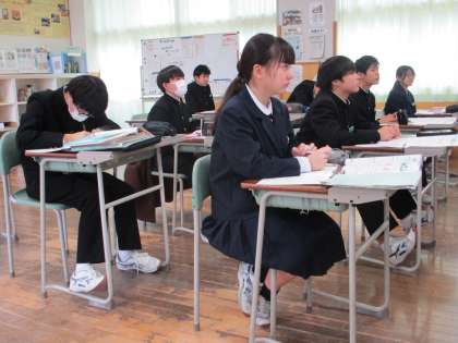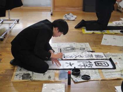 2年生は、英語でした。 3年生は、国語で書き初め練習をしていました。