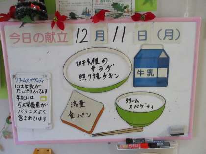 給食メニューと放送室