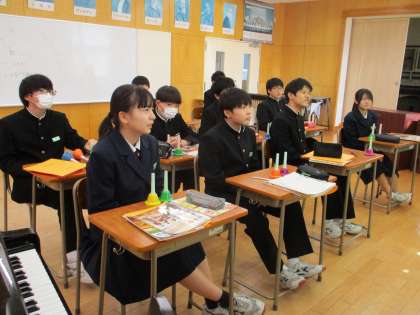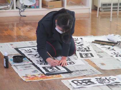 2年生は、音楽でした。 3年生は、国語で書き初め練習をしていました。