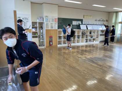 3年A組の大掃除とワックスがけの様子