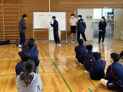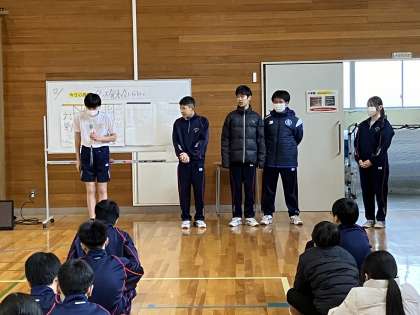 球技大会 4 公開日 2023/12/18 更新日 2023/12/18 日々の活動から 最後に実践部長が結果の発表をしました。 1位はB班でした。 けが無く無事終了してよかったです。 楽しい時間をすごしていました。 お世話してくださった皆様ありがとうございました。