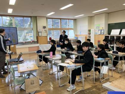1年生は、英語でALTの先生と一緒に学んでいました。 2年生は、国語でした。 3年生は、社会でした。