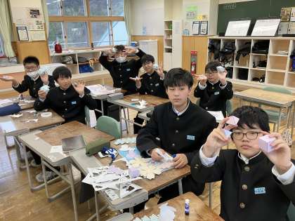 1年A組は、数学で正多面体を作っていました。 碧空級は、自立活動でした。