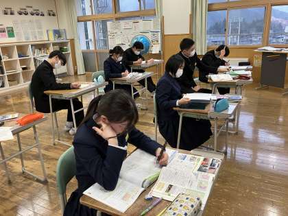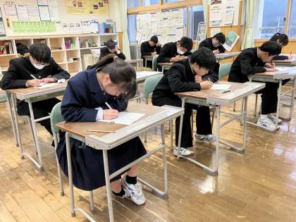 6時間目の授業の様子 2 公開日 2024/01/12 更新日 2024/01/12 日々の活動から 2年生は、英語のテキストテストをしていました。 3年生は、楡の木タイムで各自が必要なことをしていました。
