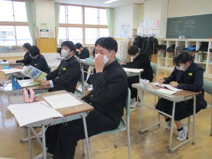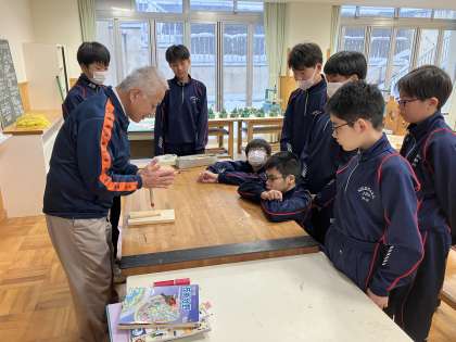 3時間目の授業の様子 公開日 2024/01/24 更新日 2024/01/24 日々の活動から 1年生は、技術でキリの使い方を学んでいました。 2年生は、家庭科で防災リュックづくりの続きでした。 3年生は、社会でした。