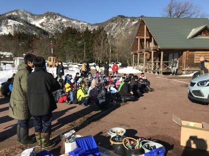 小中合同 冬の天湖森活動 開会 公開日 2024/01/30 更新日 2024/01/30 日々の活動から 天湖森に到着後、開会式を行いました。天湖森の谷井さんから今日の活動の流れや注意事項を聞きました。生徒会長が小中みんなで力を合わせて活動しようと呼びかけました。