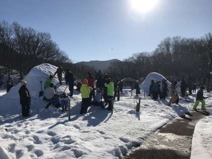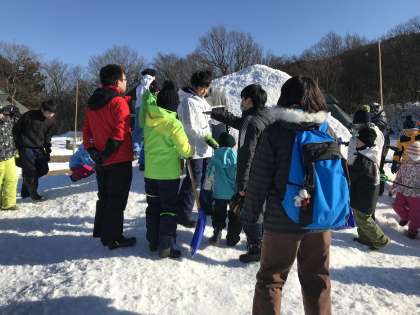 2チームにわかれて雪像を作っています。雪が固く、思った以上に苦戦中です。