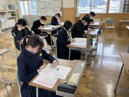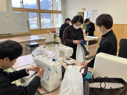2年生は、家庭科で防災リュックを作っていました。 3年生は、社会でした。