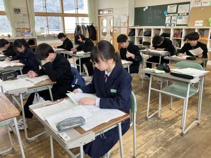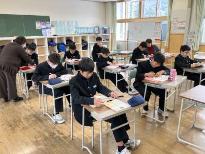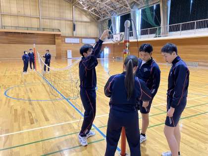 3時間目の授業の様子 公開日 2024/02/02 更新日 2024/02/02 日々の活動から 1年生は、家庭科でした。 2年生は、数学でした。 3年生は、保健体育でバレーボールの準備をしていました。