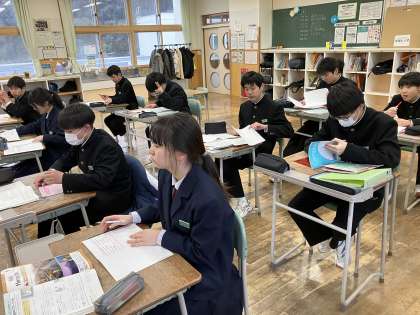 2時間目の授業の様子 公開日 2024/02/05 更新日 2024/02/05 日々の活動から 1年生は、保健体育で今からバレーボールを始めるところでした。 2年生は、英語でテストの見直しをしていました。 3年生は、理科でした。