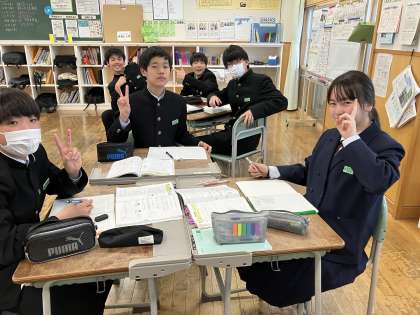 5時間目の授業の様子 公開日 2024/02/05 更新日 2024/02/05 日々の活動から 1年生は、学級活動でこれまで調べた職業調べの発表をしていました。 2年生は、数学で確率を学んでいました。 3年生は、学級活動でした。
