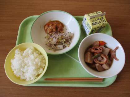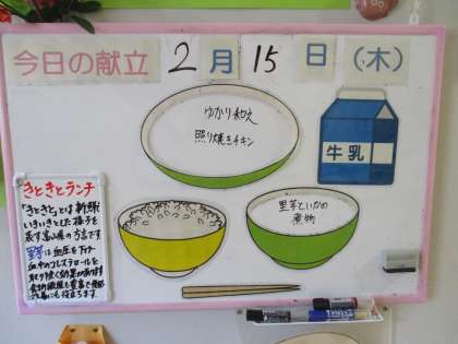 給食メニューと放送室 公開日 2024/02/15 更新日 2024/02/15 日々の活動から 給食メニューです。 ごはん 牛乳 照焼きチキン ゆかり和え 里芋といかの煮物です。 放送当番の様子です。