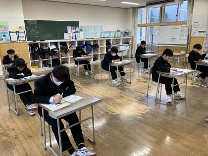 1年生は、保健体育の学年末考査でした。 2年生は、英語の学年末考査でした。 3年生は、社会でした。