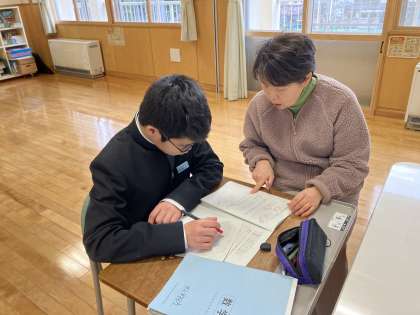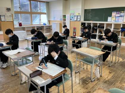 1年A組は、数学で学年末考査の再テストをしていました。 碧空級は、数学でした。