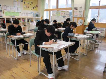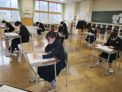 2時間目の授業の様子 公開日 2024/02/26 更新日 2024/02/26 日々の活動から 1年生は、保健体育でサッカーのミニゲームをしていました。 2年生は、英語でした。 3年生は、国語の確認テストでした。