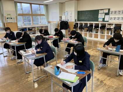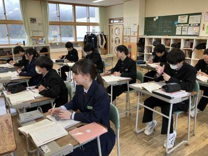 2時間目の授業の様子 公開日 2024/03/01 更新日 2024/03/01 日々の活動から 1年生は、美術でした。 2年生は、国語でした。 3年生は、数学で県立高校の過去の問題に挑戦していました。