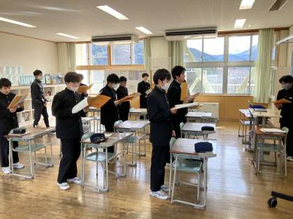 1・2年生は合同音楽でした。パート別に歌の練習をしていました。 3年生は、最後の道徳でした。