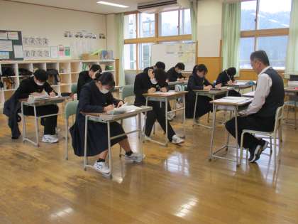 2時間目の授業の様子 公開日 2024/03/04 更新日 2024/03/04 日々の活動から 1年生は、保健体育でサッカーのミニゲームをしていました。 2年生は、英語でした。 3年生は、理科でした。