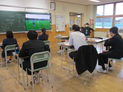 5時間目の授業の様子 2 公開日 2024/03/06 更新日 2024/03/06 日々の活動から 2年生は、理科でした。 3年生は、中学校生活最後の授業は保健体育でした。 サッカーのオフサイドについて学んでいました。