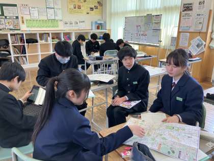 2年生は、楡の木タイムで修学旅行で行く京都のコースを検討していました。